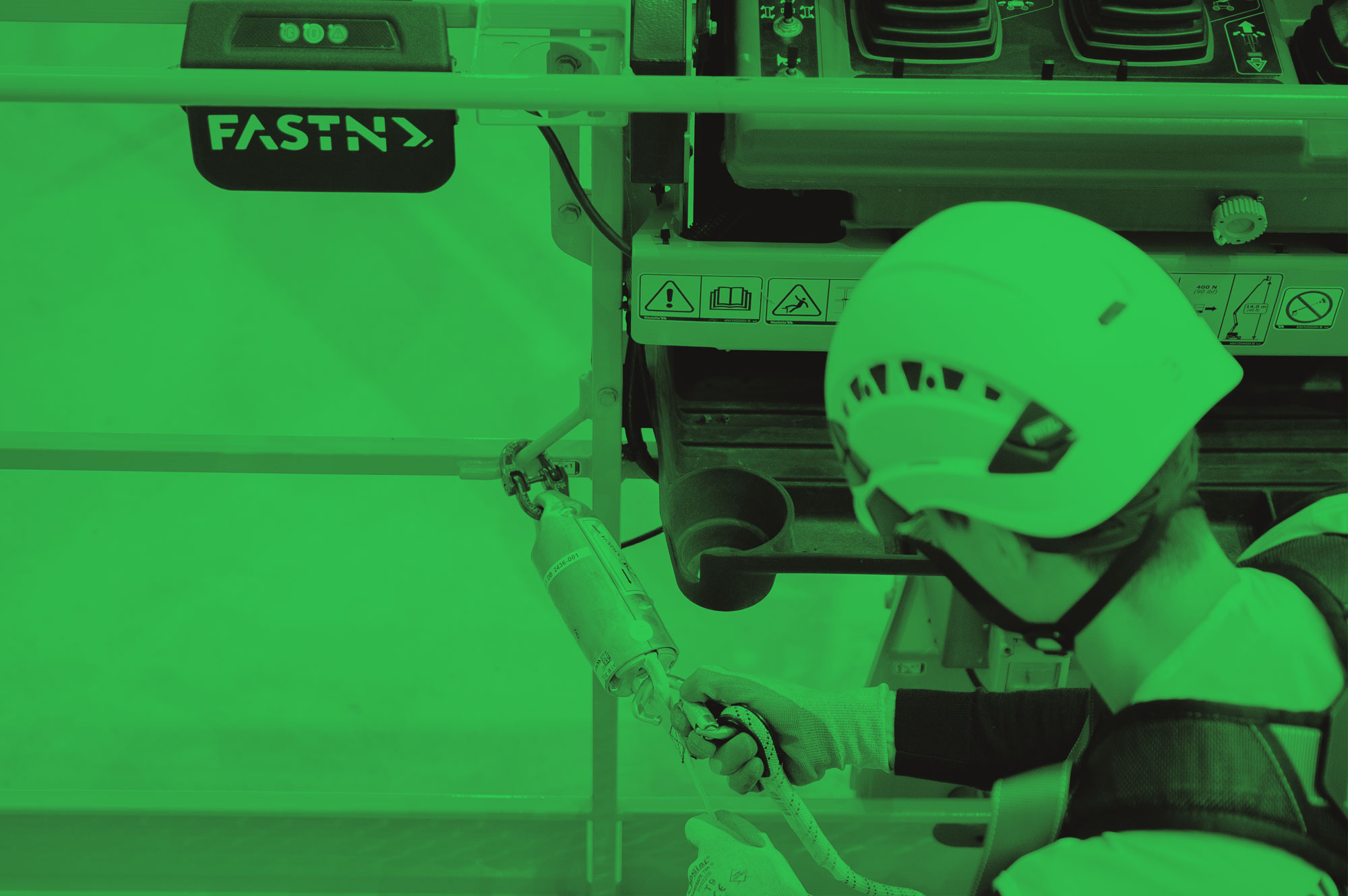 El sistema FASTN permite a las empresas constructoras mejorar la seguridad del operario de PEMP detectando el correcto anclaje de su eslinga de seguridad. Es el primer sistema de prevención de caídas conectado y universal.